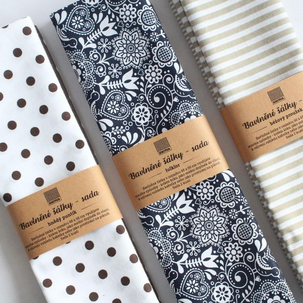Tradiční bavlněné šátky nesmí chybět v žádném šatníku. Klasické šátky mají mnoho praktických využití - kolem krku, jako čelenku, módní doplněk do vlasů nebo ho můžete uvázat na oblíbenou kabelku.