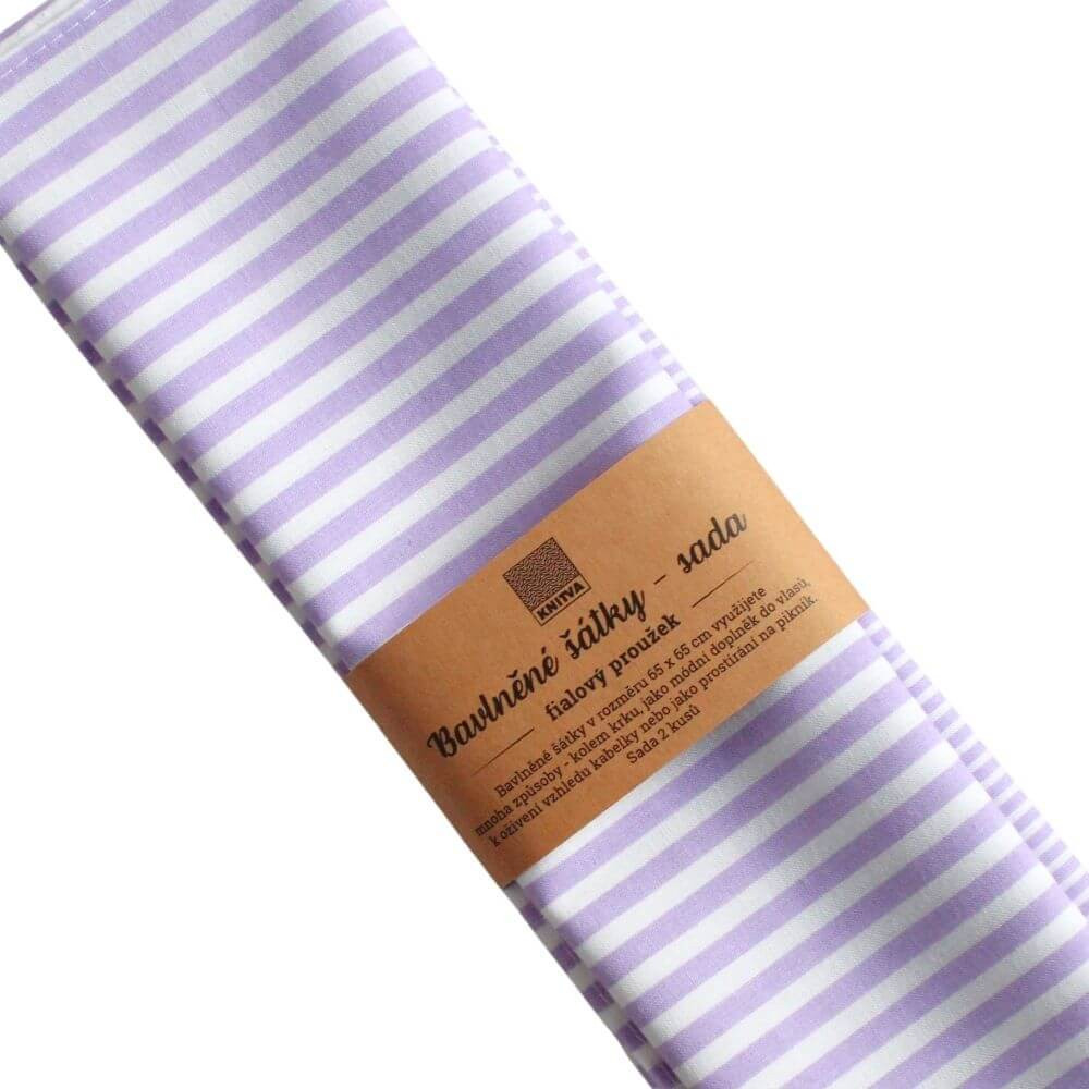 Bavlněné šátky 65 x 65 cm fialový proužek - sada 2 kusů