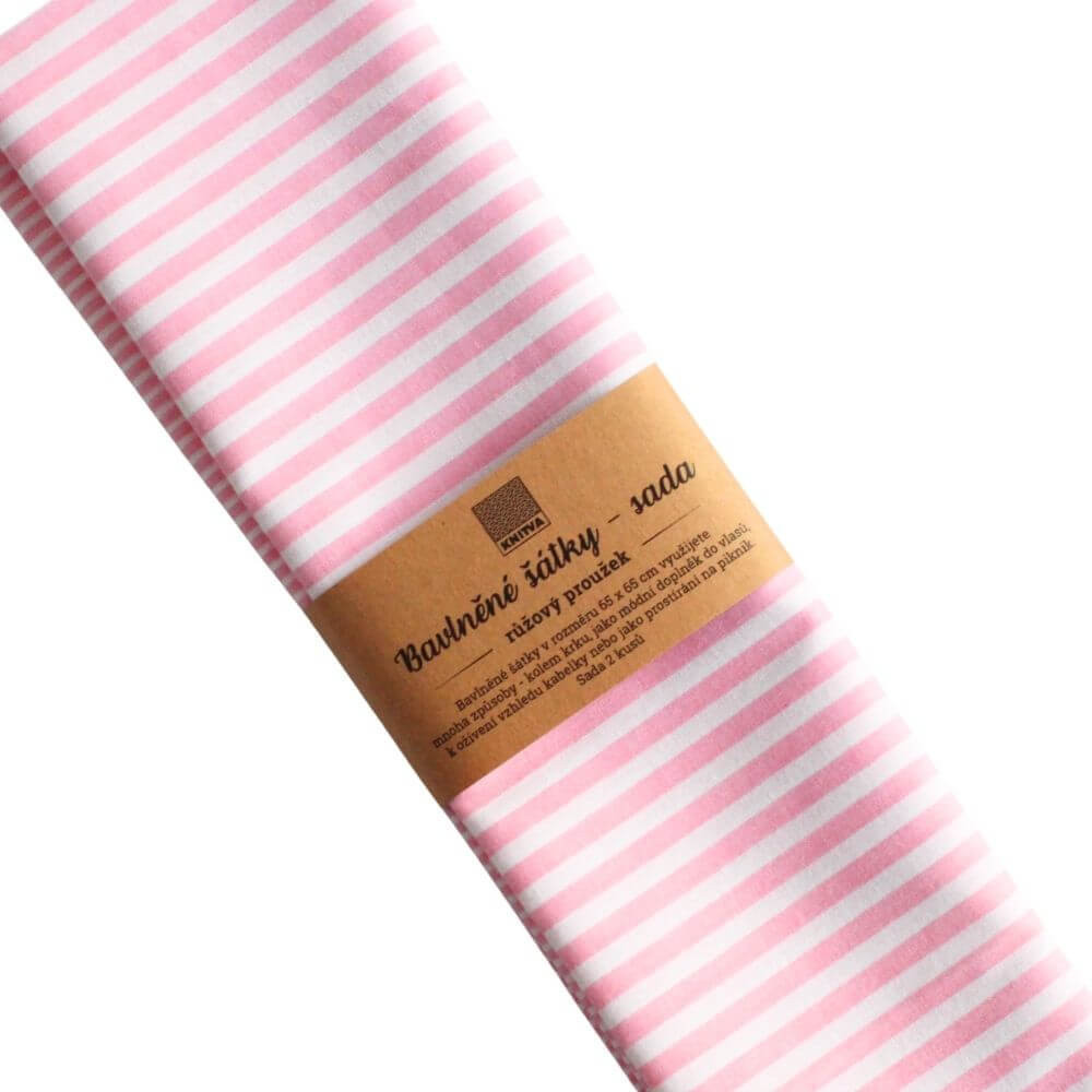 Bavlněné šátky 65 x 65 cm růžový proužek - sada 2 kusů