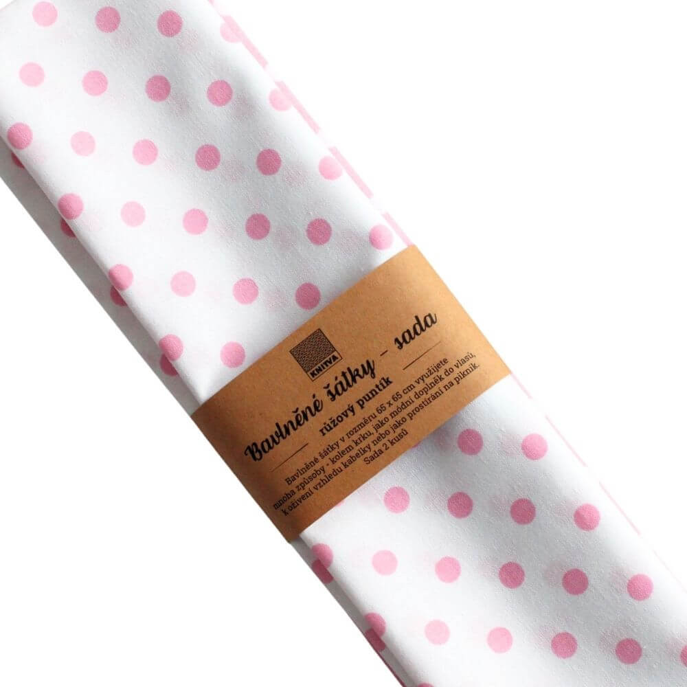 Bavlněné šátky 65 x 65 cm růžový puntík - sada 2 kusů