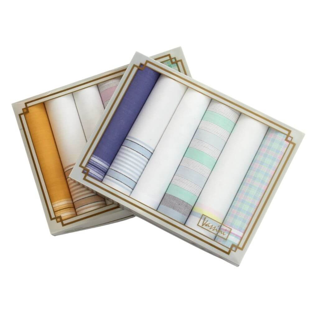 Sada dámských bavlněných kapesníčků působí velmi vkusně a něžně. Jsou uložené v praktickém boxu s průhledným plastovým víčkem. V každé krabičce je poskládáno 6 kusů látkových kapesníků v jemných pastelových barvách v odstínech modré a zelené. Krabička/balení 6 kusů dámských látkových kapesníků z jemné čisté bavlny bude i vhodným a praktickým dárkem pro každou ženu.