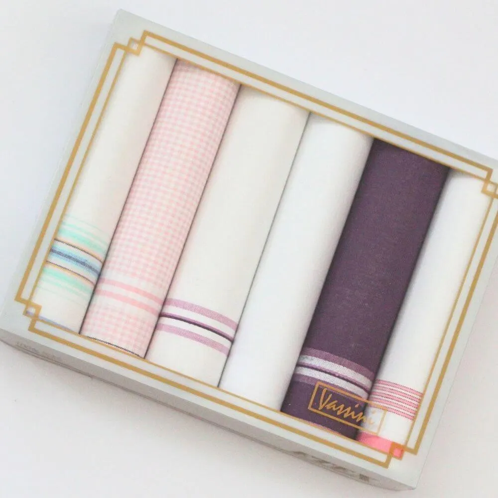 Dámské látkové kapesníky v sadě 6 kusů v jemných pastelových barvách jsou vkusně uloženy v krabičce s průhledným plastovým víčkem. Krabička dámských látkových kapesníků z jemné čisté bavlny bude i praktickým dárkem.