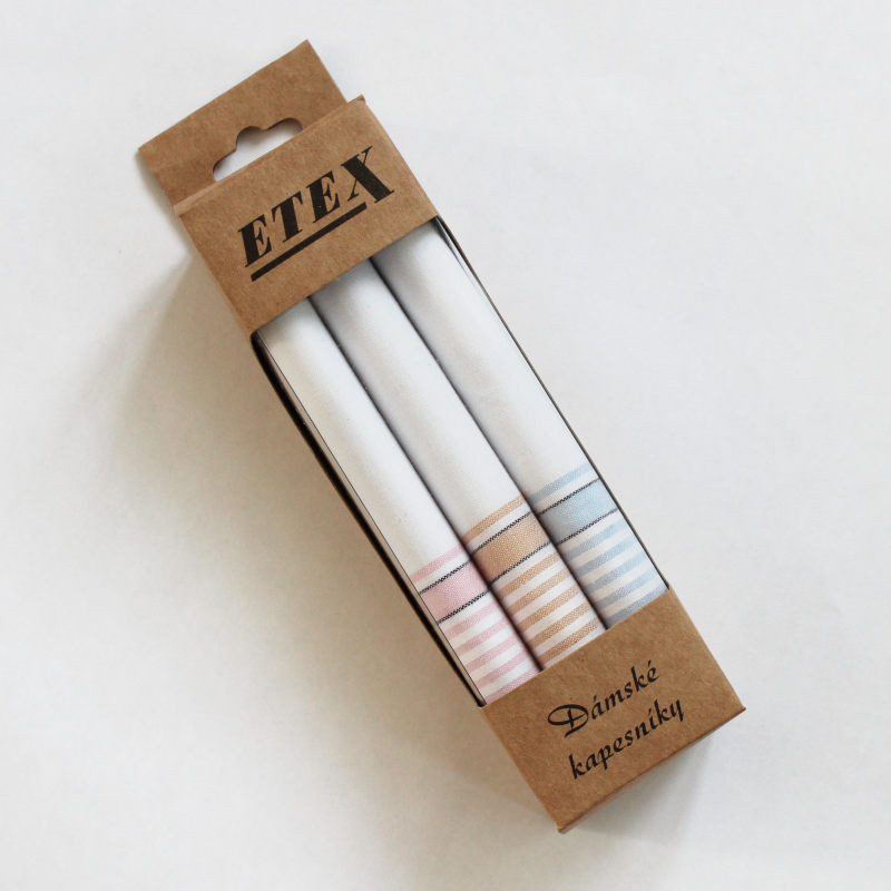 Velikost kapesníků je 28 x 28 cm a jsou od tradičního českého výrobce ETEX.