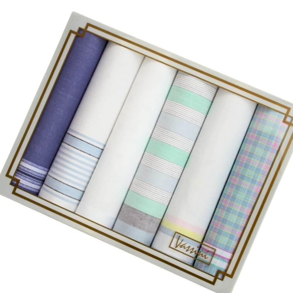 Kapesníčky jsou k sobě krásně barevně doladěny, dezén vybraných kapesníků se může mírně lišit.