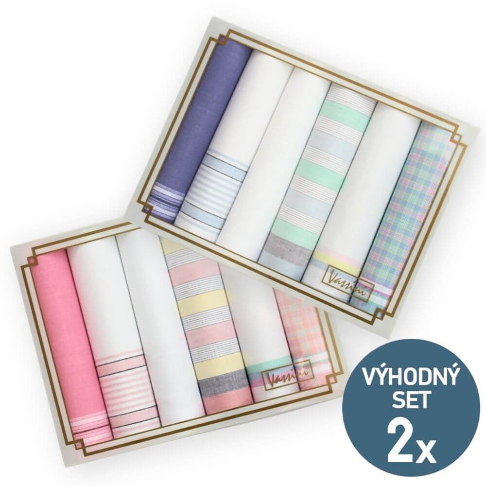 Dámské látkové kapesníky VASSINI modré a růžové - 2 dárková balení
