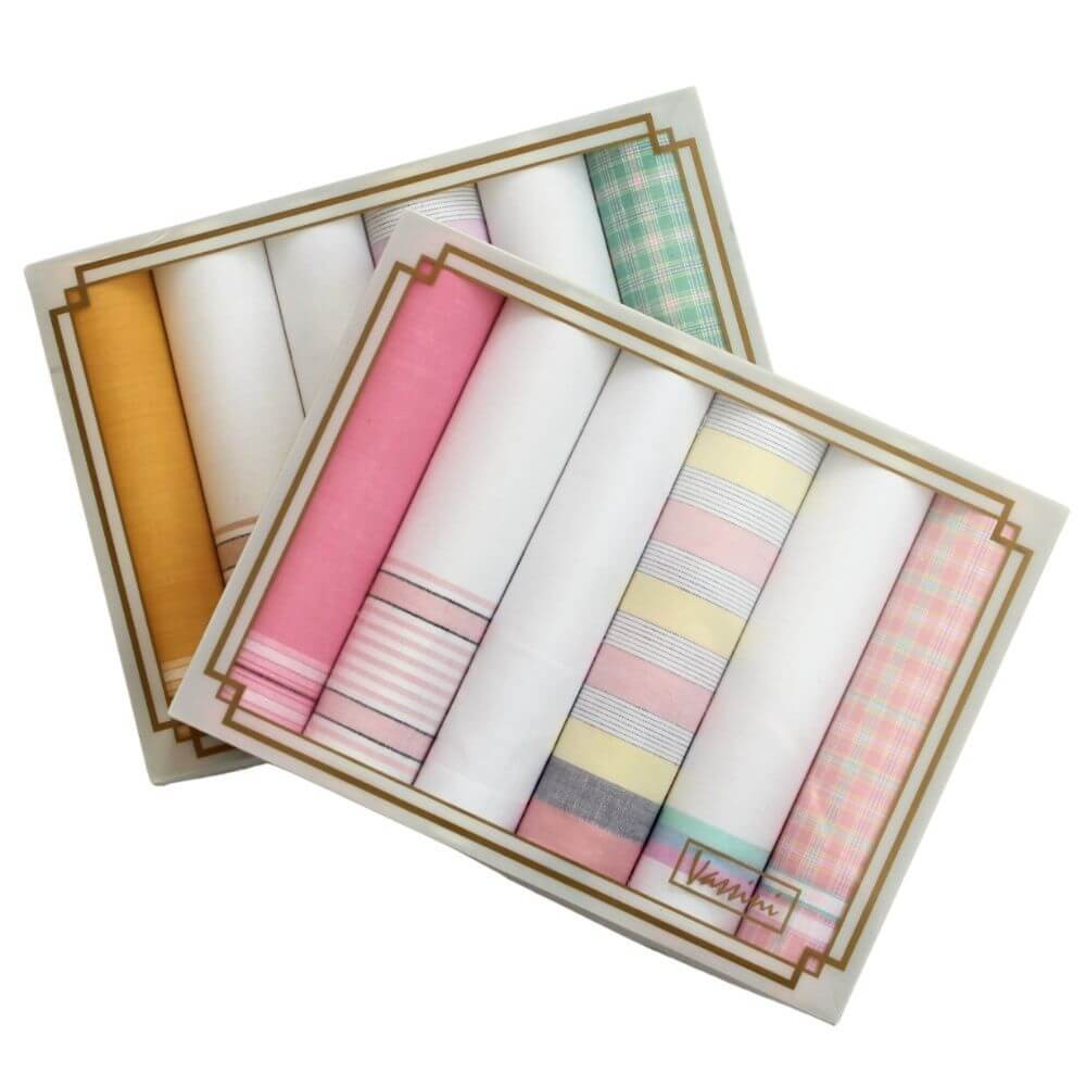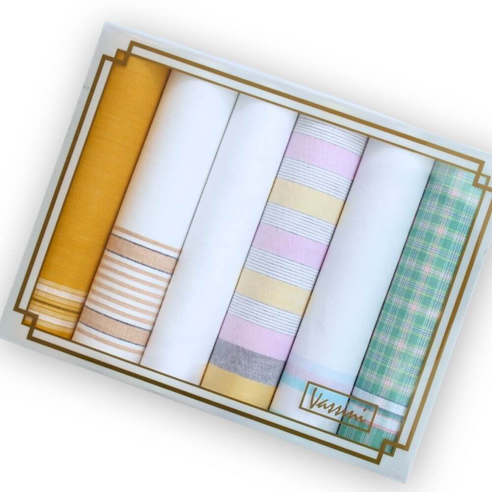 Dámské látkové kapesníky v sadě 6 kusů v jemných pastelových barvách je vkusně uložena v krabičce s průhledným plastovým víčkem. Krabička dámských látkových kapesníků z jemné čisté bavlny bude i praktickým dárkem.