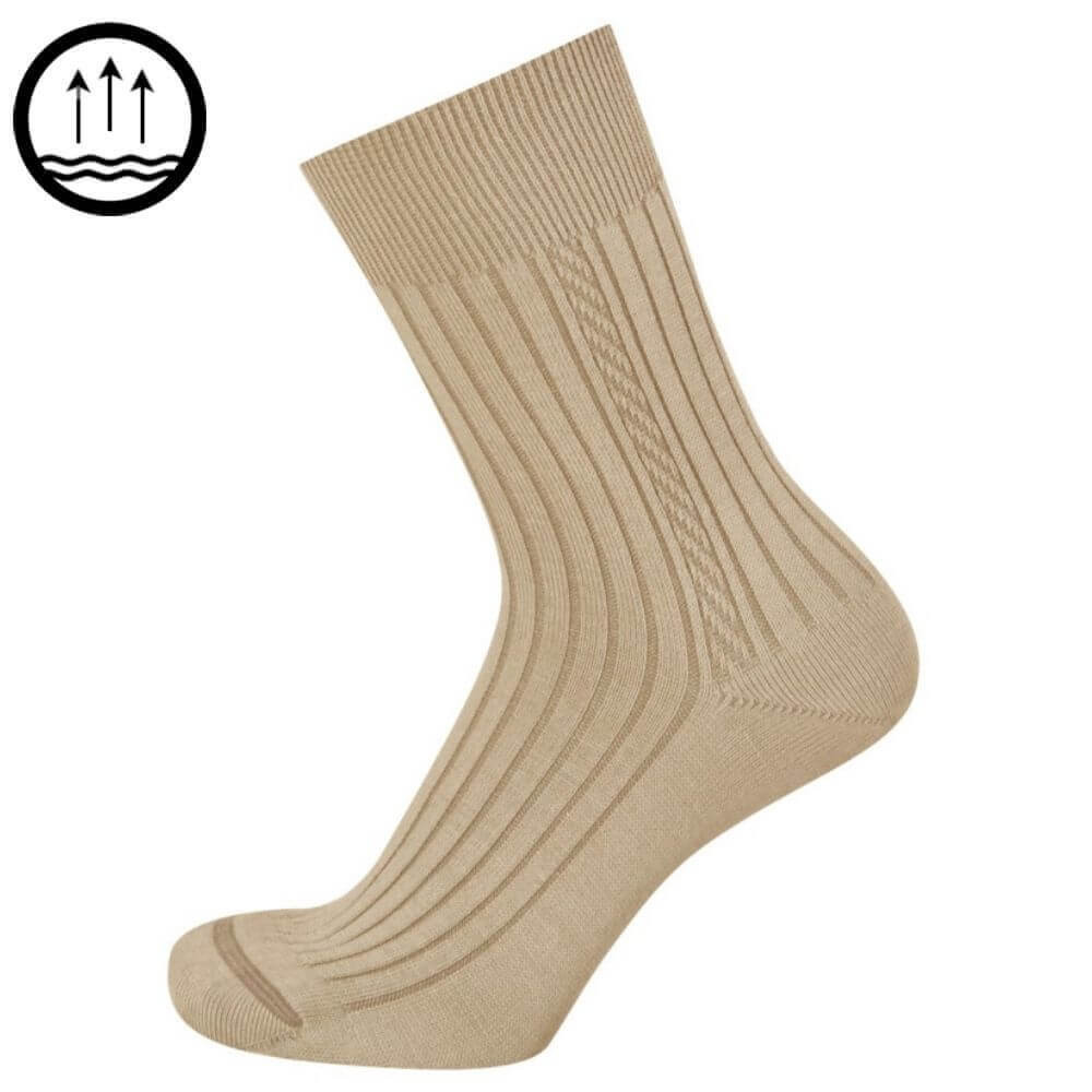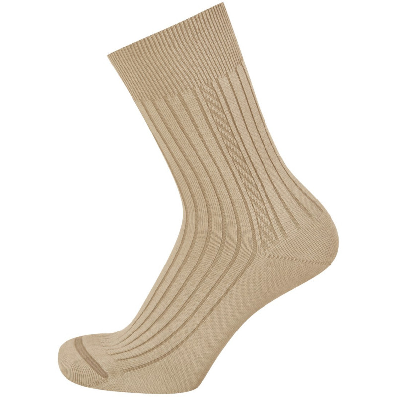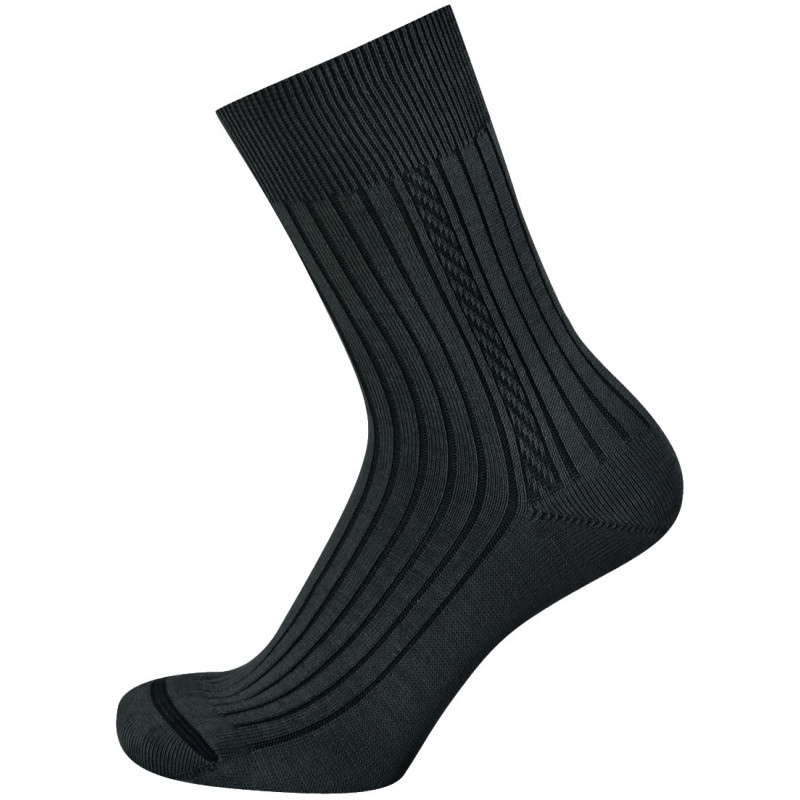 Dámské ponožky s klasickým žebrovaným vzorem a nesvíravým lemem. Díky použitým materiálům jsou ponožky odolné v oděru a mají tak vysokou životnost. Ve špičce je velmi plochý šev, který v botě netlačí.