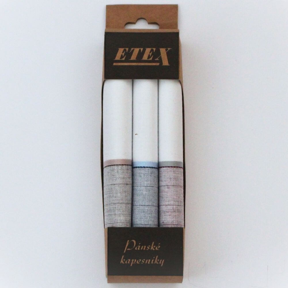 Velikost kapesníků je 40 x 40 cm a jsou od tradičního českého výrobce ETEX.