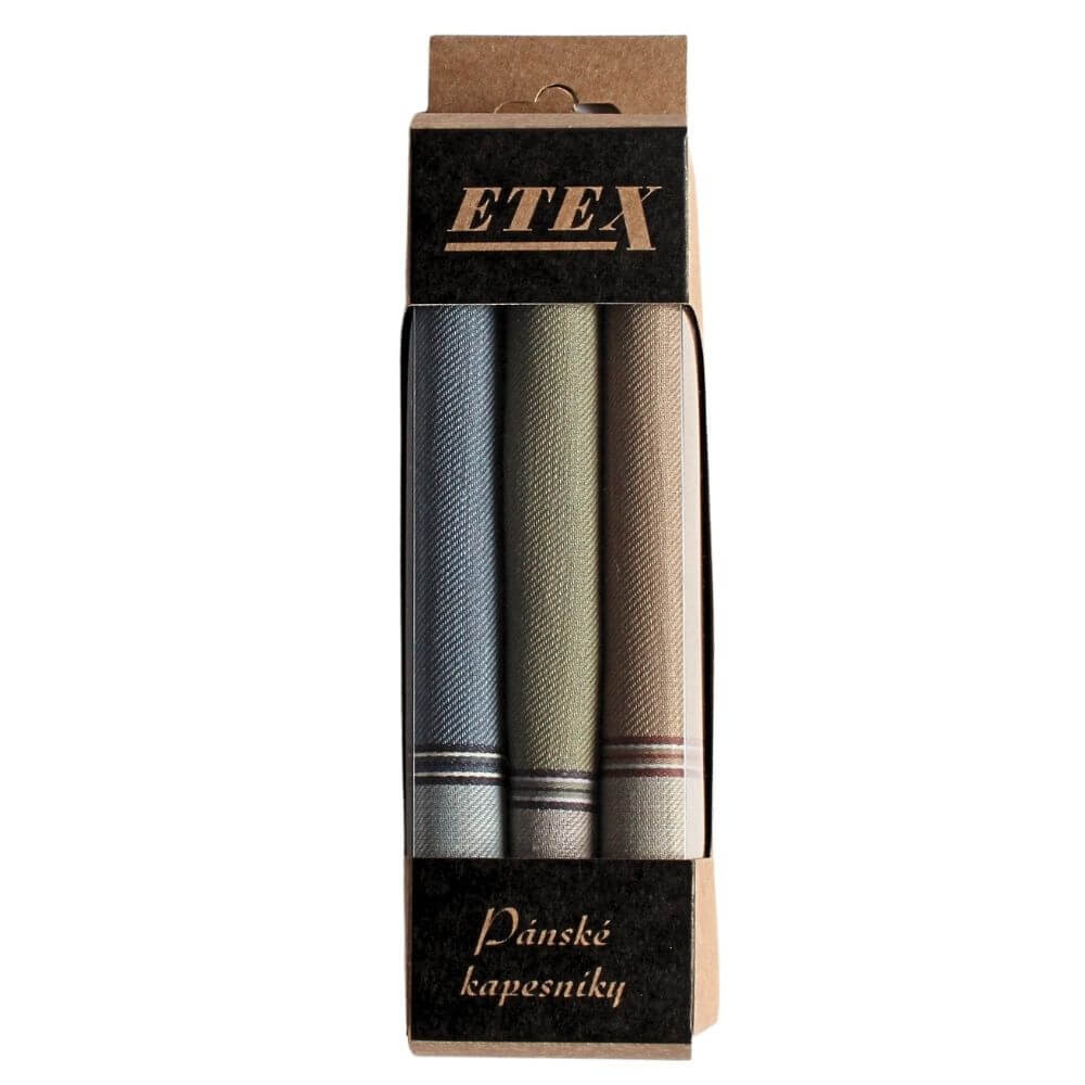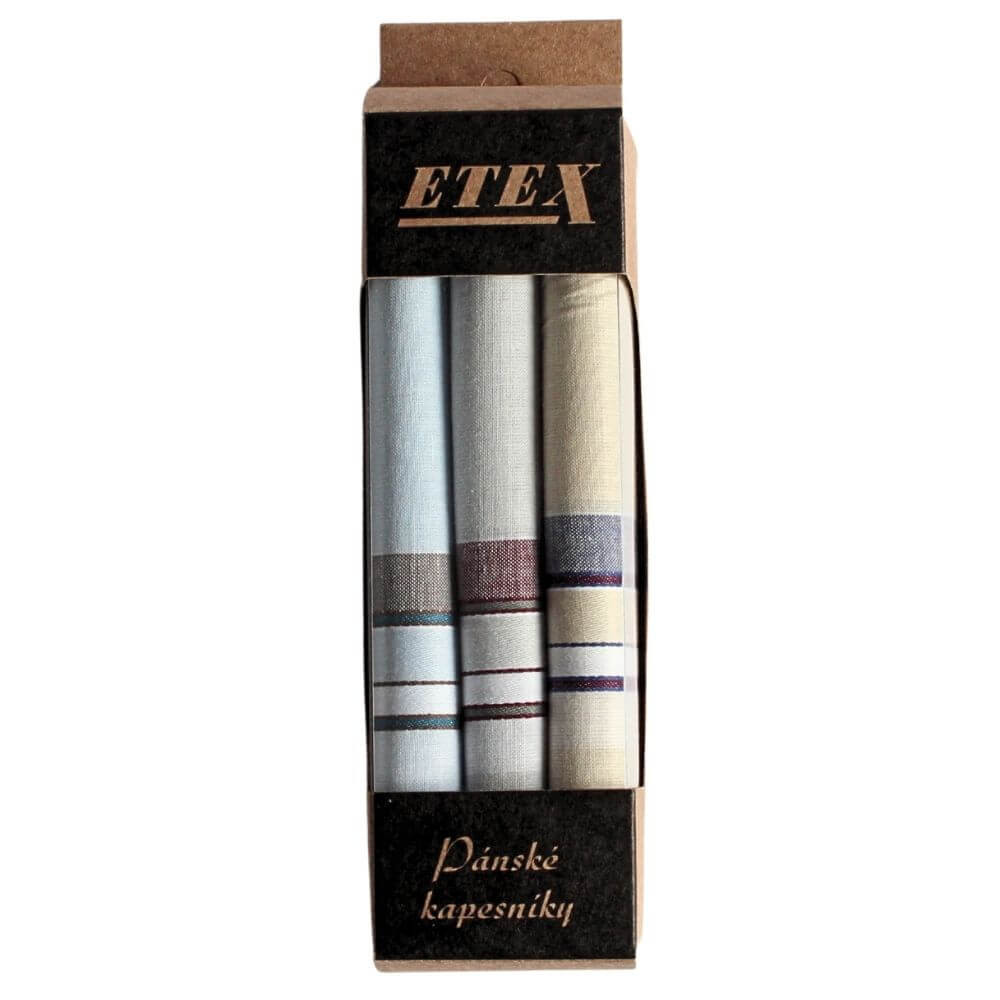 Velikost kapesníků je 40 x 40 cm a jsou od tradičního českého výrobce ETEX.