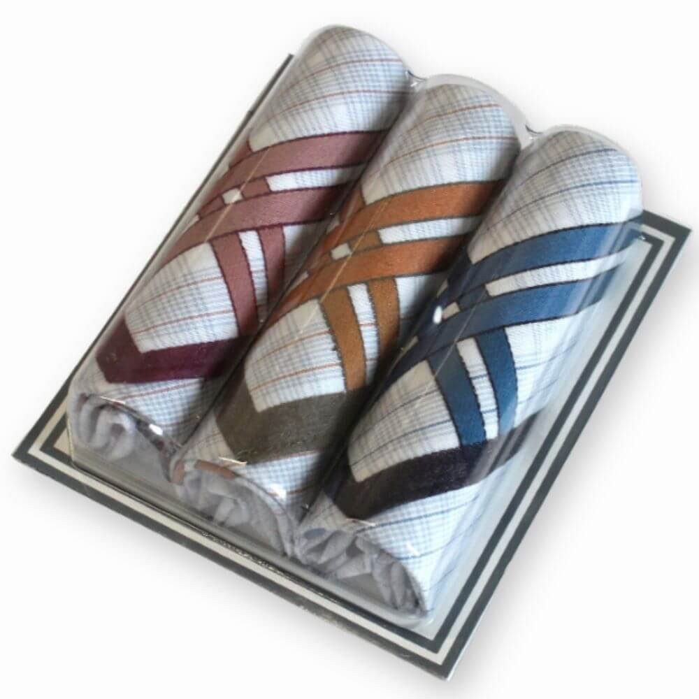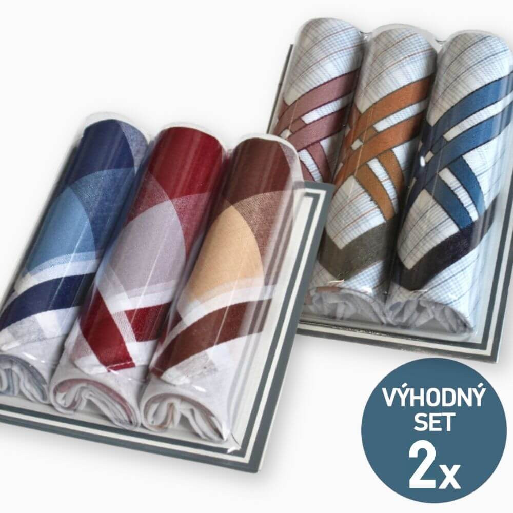 Výhodná sada 2 balení pánských kapesníků VLNKY (celkem 6 kapesníků) se slevou 10 %. Látkové kapesníky z kvalitní 100% bavlny jsou uloženy v elegantním průhledném obalu.