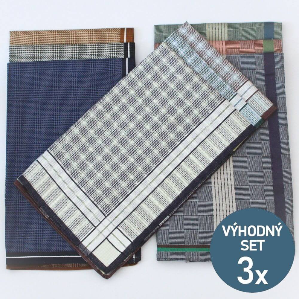 Luxusní pánské látkové kapesníky v sadě 3 kusů. V setu najdete kapesníky v kombinaci světlých nebo tmavých barev. Český výrobek.