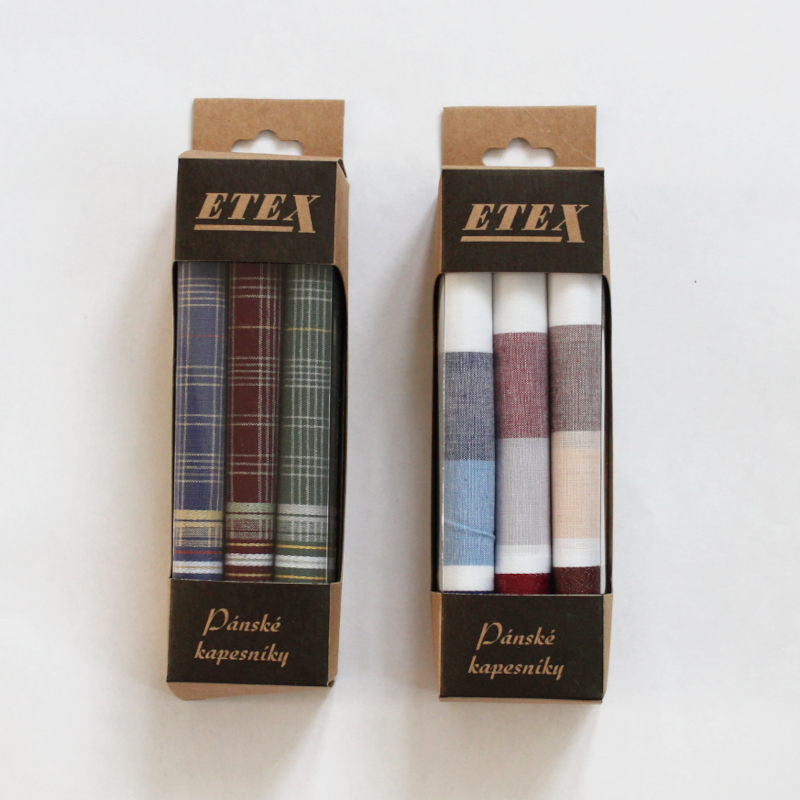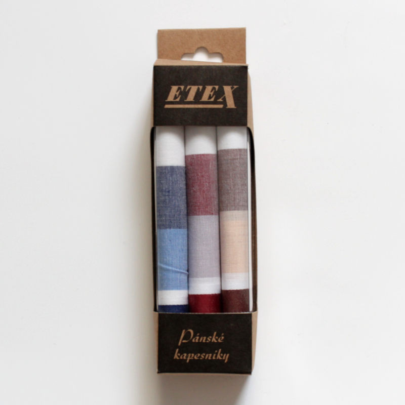 Velikost kapesníků je 40 x 40 cm a jsou od tradičního českého výrobce ETEX.