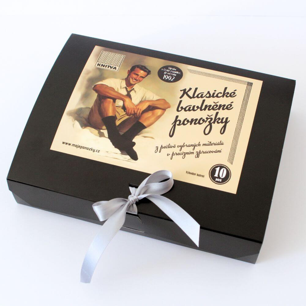 Oblíbené pánské ponožky v elegantním dárkovém balení po 10 párech. Krásné originální retro balení ve stylu 1. republiky.