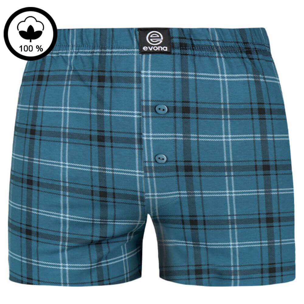 Stylový potisk modré kostky dodává trenkám moderní vzhled, takže se skvěle na běžné nošení i na spaní. Záruka kvality od českého výrobce EVONA.
