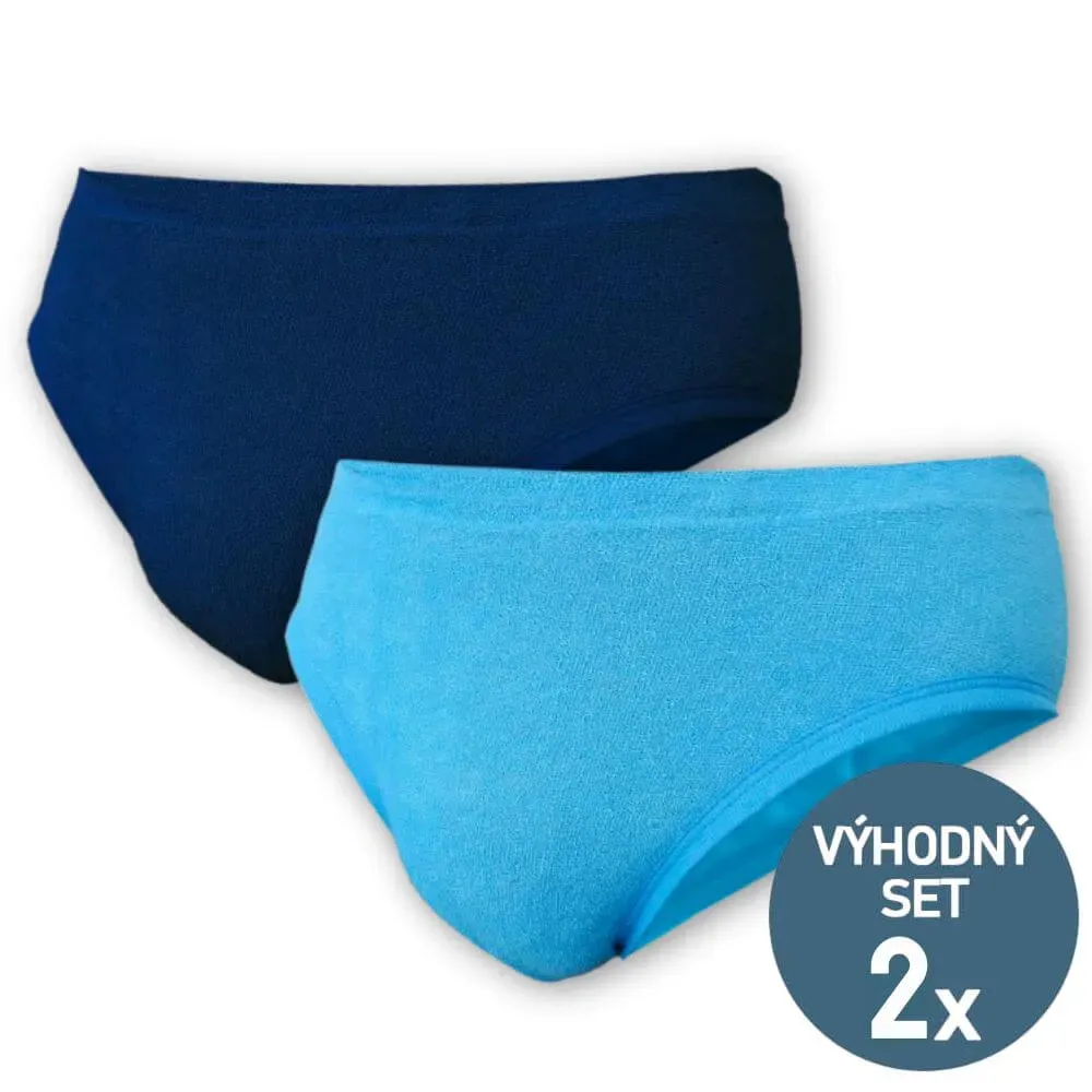 Pánské slipy nabízíme ve výhodné sadě 2 kusů (1x světle modré + 1x tmavě modré) ve velikostech 2XL a 3XL.