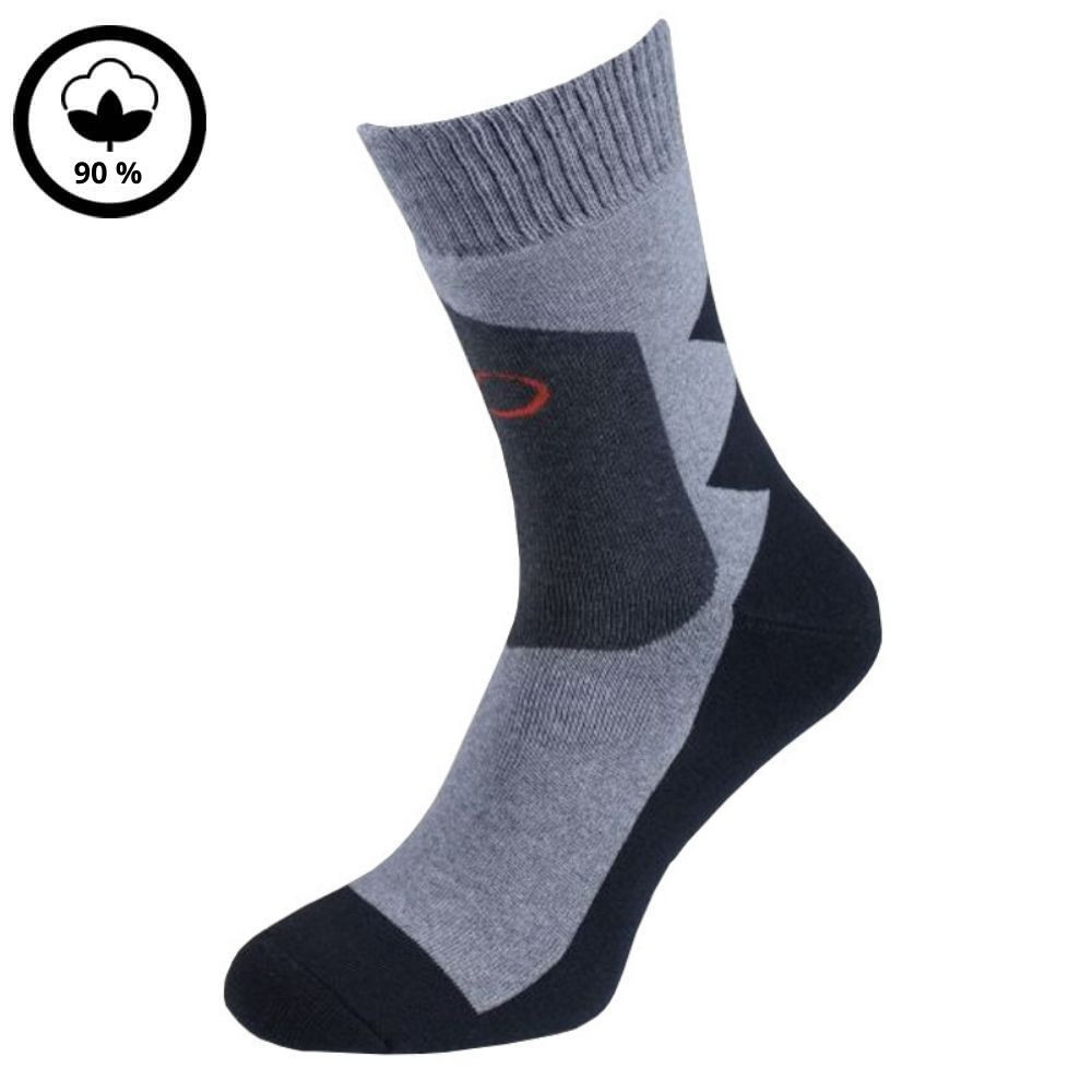 Sportovní outdoorové ponožky jsou vyrobeny s měkkým vnitřním froté, které se dokonale postará celodenní komfort a pohodlí. Celofroté ponožky s 90% podílem bavlny mají prakticky zpevněnou špici a patu, ponožky jsou vhodné do pevných bot. Lem je příjemný, nesvíravý.