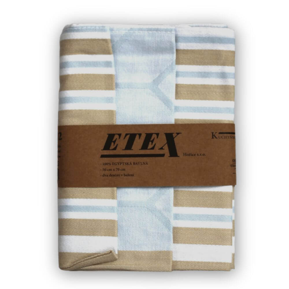 Luxusní utěrky z egyptské bavlny béžovo-modré - geometrie - 3 kusy