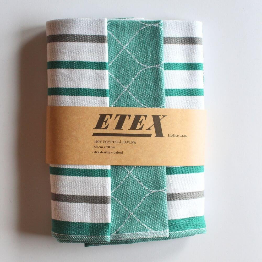 Luxusní utěrky z egyptské bavlny zelené - geometrie - 3 kusy