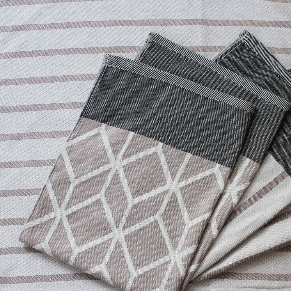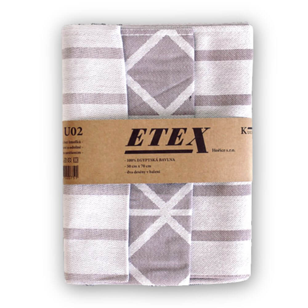 Luxusní utěrky z egyptské bavlny hnědé - geometrie - 3 kusy