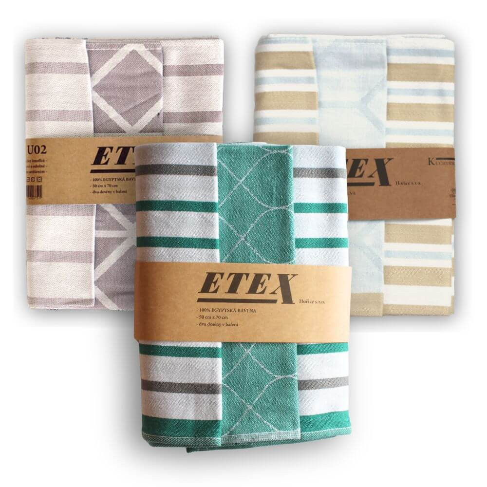 Výhodná sada utěrek obsahuje kombinaci 3 setů v odstínech hnědé, béžovo-modré a zelené barvy.