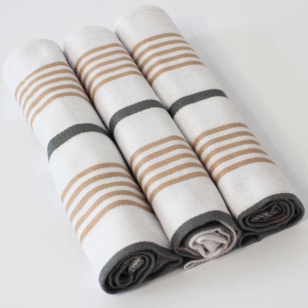 Bavlněné kuchyňské utěrky ze 100% egyptské bavlny jsou super savé hned po 1. použití. Jejich měkkost a savost vás opravdu překvapí. Díky vysoké gramáži bavlny navíc utěrky nežmolkují a nepouští chloupky. Bavlněné utěrky nabízíme v sadě 3 kusů.