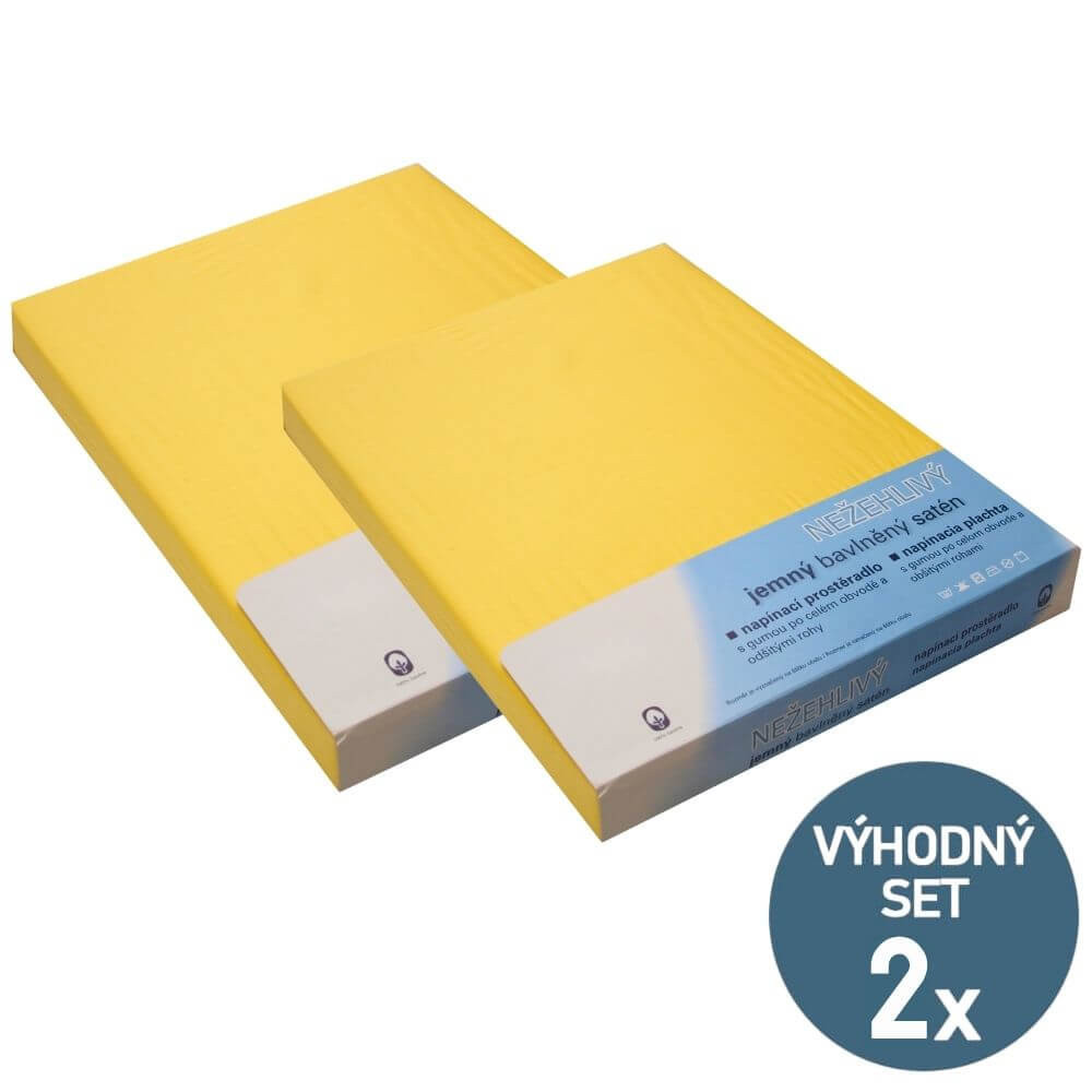 Saténové napínací prostěradlo 90 x 200 cm ŽLUTÉ 1+1